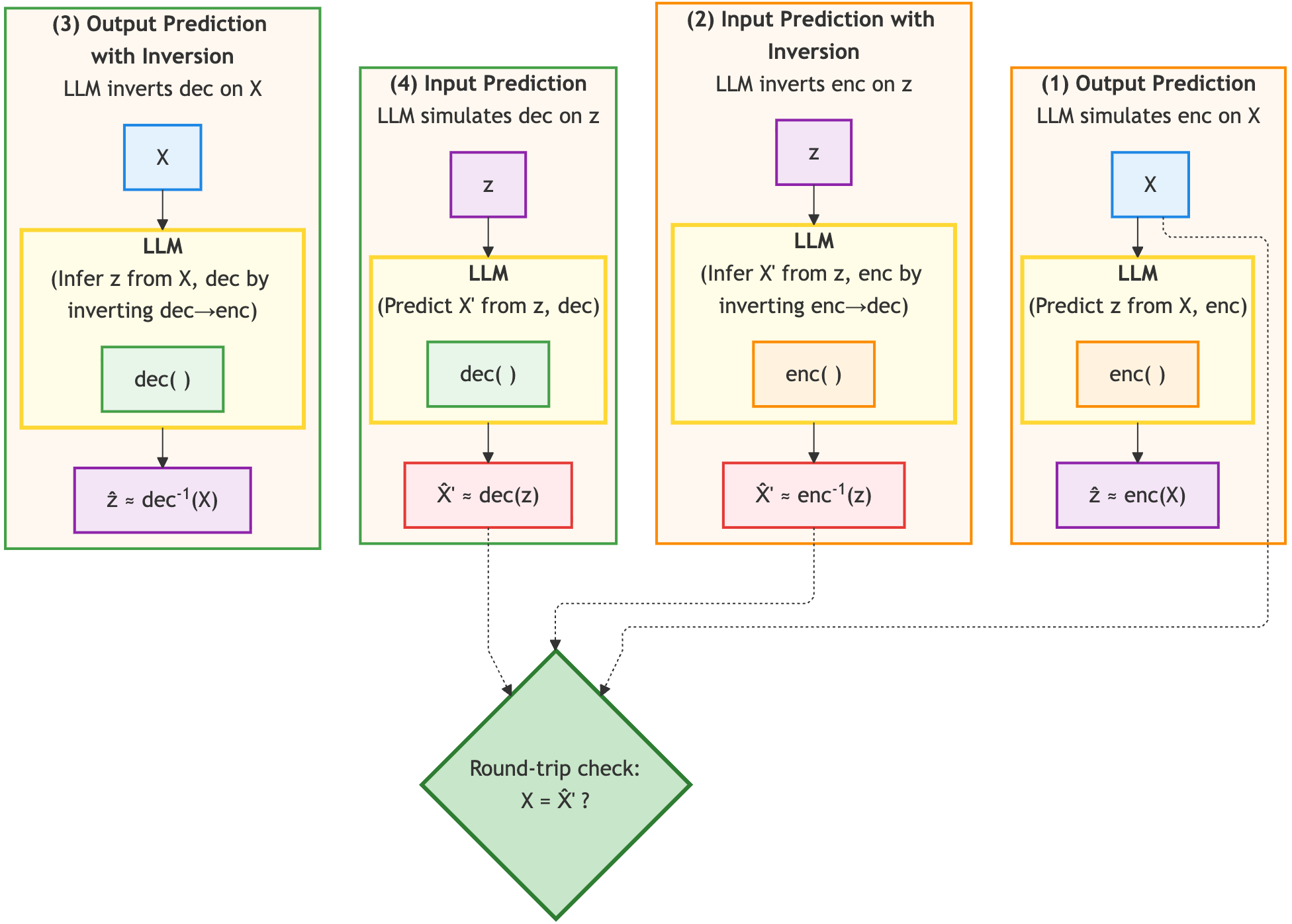 - tl;dr: We introduce RTCE, a new benchmark which shows that even state-of-the-art code LLMs struggle to maintain consistent reasoning between forward and reverse execution, highlighting a lack of true round-trip coherence.[ paper | bibtex | abstract ]